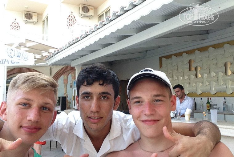 в самые первые дни,когда мы приехали ,кормили не очень(примерно 1 день),а потом кто-то пожаловался и стали отпадно кормить,выпивка отличная. Хочу отметить, очень классных официантов , с которыми можно посмеяться и поговорить по душам( на русско-турецком чтоли), и эти ребята Усейн и Сэксгин (дайте им премию,реально лучшие ребята). Так же анимация была превосходна, после завтра начинается зарядка, всякие смешные конкурсы , дискотеки были неплохие ,особенно в последние дни. Стоит отметить аниматоров: Катя,Настя, Юля и четких ребят ,которые поднимают настроение ,это зажигатель Анил( Даниил ,он поймет кто это) и Айрос(диджей).Воллейбол играли классно ,каждый день. И еще забыл классного охранника ,мы его зовем Тайсон. Девушек много и все-таки нашел единственную(Абрамова). В общем отдых очень понравился и так не хотелось уезжать,остаться еще бы на пару деньков. Отелю ставлю 4. Достойно. Всем советую))