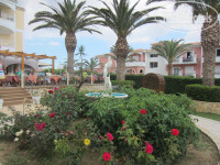 Территория маленькая, компактная, если провести прямую линию будет такой маршрут – вход с площадью и фонтаном -ресепшион-ресторан, небольшой участок с газонами, беседками, центральной клумбой и так же фонтаном, снек-бар- бассейн, алкогольный бар, лежаки под пальмами по дороге к морю, сам пляж и море. Корпус расположен сбоку этой прямой линии, в виде буквы Г. От начальной до конечной точки 2 мин хотьбы. Влево-вправо иди некуда, но это не мешало, я бы назвала их территорию правильно организованным пространством, ничего лишнего, все очень ухожено, кусты подстрижены, газоны ровные, пышные. Тетеньки с метлами убирают с утра до вечера. Один раз правда дядька « порадовал» опиливал пальмы в 6 утра, но это один раз было.