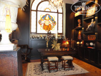 Антикварный интерьер поразил: зеркала, на которых действительна видна печать многих-многих десятилетий, совершенно уникальные детали: хрустальные люстры, кованные лампы, резные ножки столов и стульев... Но все это для тех кто оценит. Кстати, персонал говорит, что это излюбленный отель обеспеченных русских. Видимо очень обеспеченных.