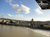 Отель уникален своим месторасположение на набережной реки Арно. Очень грамотно используется данное преимущество: есть великолепный панорамный ресторан, столики в котором забронированы на много месяцев вперед.