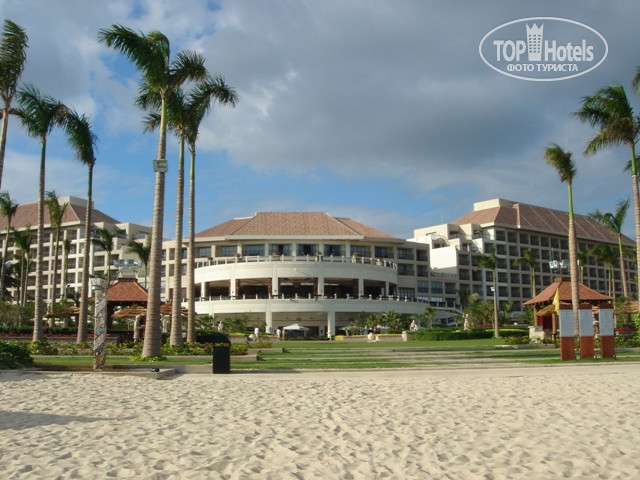 Новый, просто шикарный отель Sanya Marriott Resort 5*, расположен на большой территории, в прекрасном живописном месте, в 40 минут езды от международного аэропорта и в 20 км от г. Санья. Песчаный пляж длиной 450 метров. Белый песок. Красивые виды, ухоженные сады и площадки. Многоуровневые бассейны с джакузи и водопадами. Теннисный корт. Рядом гольф-клуб. Обслуживание на хорошем уровне. Удобные номера. Правда, был один элемент неудобства - на пляже не хватало шезлонгов. Такое впечатление, что каждое утро кто-то пробегал и раскладывал полотенца на всех шезлонгах - чувствуется профессиональная рука наших соотечественников. Отель, видимо, не был готов к такому наплыву туристов, где 80% составляли гости из России. К счастью, можно было загорать прямо на травке или у бассейнов. В море вода +22, купались без удовольствия. В бассейнах вода тоже прохладная, не подогреваемая.