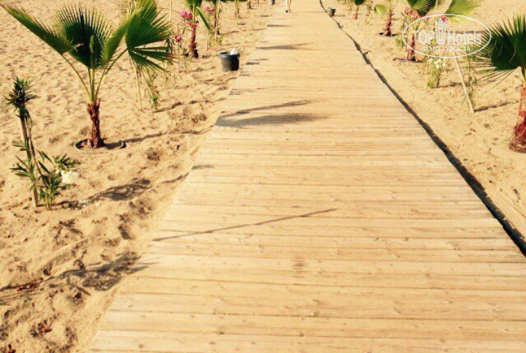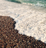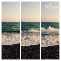 Пляж: Красивое море. Галечный пляж. Мало народу. Резкая глубина. 5 дней шторма, (опасного для здоровья), не купались. Периодическая пленочка на поверхности (утром), быстро исчезала в пучине морской. Лежаки – всегда найдется свободный. Песок есть в тенечке под навесом, достаточно далеко от моря (относительно маленьких ножек).