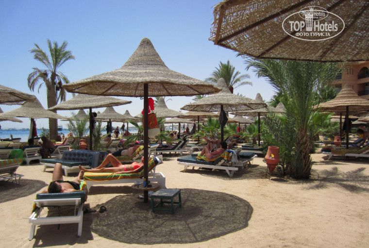 Территория отеля. Она масштабная, ухоженная и красивая! Наверное, не нужны слова, лучше взглянуть на фотографии. Пляж... Он очень большой. Не соврем, если скажем, что протяженность его вдоль берега метров пятьсот. Отдельно расскажем про бронирование лежаков. Как вы знаете, большинство туристов из Германии. То ли у них так принято, то ли все решают доллары. После получения полотенец (на стойке при входе на пляж по карточкам) мы отправлялись на лежаки. Большинство из них были накрыты полотенцами, а владельцев... мы не увидели. Таким образом их бронируют. И попробуй занять чужие...