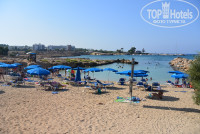 Пляжи на Кипре все муниципальные. Мы ходили на пляж недалеко от отеля, который на право от отеля. Это небольшая бухточка, вода чистая. Зонт - 2,5 евро, лежак - 2,5 евро. Вы занимаете любой пустой лежак или зонтик, а человек, собирающий деньги, подойдет к Вам сам. Правда, за 7 дней, что мы там отдыхали, к нам ни разу не подошли. Мы так и не поняли, почему. Мы брали только зонтик без лежака. Вообщем мы решили, что он подходит только к тем, кто берет лежак, лежак и зонтик. Можно купить в соседнем магазине зонтик, но они очень плохо устанавливаются на пляже, так как почва каменистая. По всему побережью циркулирует мороженщик, мороженое у него очень вкусное (2 евро), останавливается прямо на пляже. Там, где мы были, вход в море был смешанным: по центру - песок, чуть в сторону - камни. Очень удобно с детьми, так как у берега песок. Дорожка на пляж действительна не оборудована, но она не так страшна, как ее обрисовывают в отзывах. До пляжа, на который мы ходили, 5-7 минут.