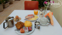 Завтраки действительно скудные, один поднос в одни руки, но никто изысков и не ожидал: кофе, молоко, два куска хлеба, два ломтика колбасы и один ломтик сыра с парочкой джемов. Кофе ужасный, одна вода, один раз мне повезло: дали 1 вареное яйцо. На десерт идет либо фрукт, либо кекс. Выданный мне персик я не смогла ни укусить, ни разрезать. Но рядом есть неплохая таверна Арго, лучше питаться там.