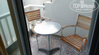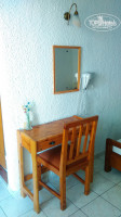 Комната маленькая, есть балкон со столиком и стульями, большая двуспальная кровать от стены до стены, матрас хороший, упругий, постельное белье чистое, но в дырах, меняли за 10 дней 1 раз. Порадовало наличие телевизора, фена и холодильника со стаканами и заварочным чайником. Но радость была недолгой, когда я обнаружила, что в номере всего одна розетка над изголовьем кровати в другом конце комнаты, и если чайник еще можно как-то поставить на кровать, то фен привинчен к стене, и подключить его невозможно. В последствии выяснилось, что свет в номере также нигде не работает, кроме ванной комнаты.