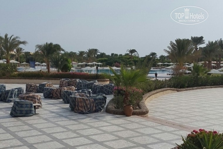 Территория большая, более менее ухоженная, зеленая – есть детская площадка. Бассейны обычные средних размеров не глубокие, в детском есть несколько маленьких горок. Больших горок нет – что конечно минус. По территории катаются машинки что бы возить отдыхающих – но как их выцеплять или вызывать мы так и не поняли )) Да и вообще пешком ходить полезнее ))