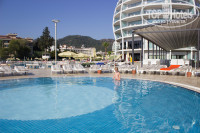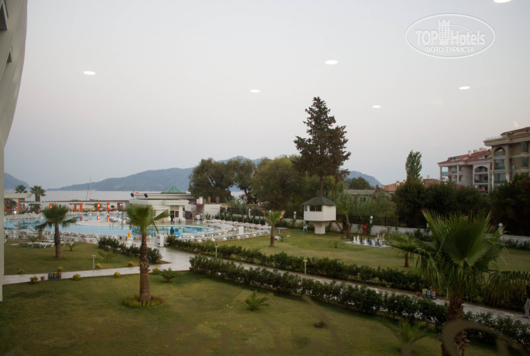 Хочется поделится впечатлением о нашем отдыхе со всех сторон, потому что многие как и мы отдыхают с детьми, и для нас были важны многие детали! Отель выбирали исходя из отзывов ( на тот момент только положительных), цены и привлекательным внешним видом (также учитывали, что он новый). По вопросу чистоты внутри отеля и территории ничего сказать не могу, молодцы, всегда порыдок. Пару раз замечала непромытые ложки в ресторане, ну и в номере убирали не каждый день, но на это мы внимание не обращали. ПЛЮС большой, что есть сейф БЕСПЛАТНО в номере, холодильник с напитками тоже. Вид конечно был не красивый с балкона, но мы этого и не требовали, в основном только спали в номере. Сам большой, с детской кроватью. На ресепшене есть девушка - Аксана, она отвечает на вопросы русских туристов, но к сожалению только с 9-18. Остальные по-русски никак:(Питание в ресторане конечно супер, и мясо разное, и гарниры, сладости вообще сказка)НО! для детей бы конечно я бы включила в меню молочные каши, тут их нет(за весь наш отдых 1 раз была рисовая и всё), и соки сначала были разведёные (прям юппи), потом, к концу отдыха - хорошие, может потому что с этим вопросом мы обращались к Аксане.Ну а в целом Ешь и Ешь! Фруктов много, Мороженое - вкуснятина! По сервису: РУССКИХ там не любят! Мы чаевые не оставляем! А они там любят их, и даже конкретно намекнули на это нашим друзьям:). В лобби баре сначала была проблема вообще заказать коктейль даже безалкогольный, потому что они "ТИПА" нас не понимают, а меню вечно на стойке нет, а потом и вообще отказывались делать, под видом того, что кончались сиропы! Один раз дошло до "шефа", мы не выдержали, но отношение к нам от этого не изменилось!. Во всех барах отеля, да и на ресепшене тоже, лица персонала явно чем то недовольные!. Утром столы ненасервированы, всегда нужно искать себе приборы, да и вечером не всегда они на месте. Теперь про ПЛЯЖ!. есть мусор, зонтики некоторые уже сломаны) но самое интересное))) что мест то на пляже даже в 7 утра по центру нет! потому что на лежаках разложены полотенца старшего или как его назвать, по пляжу. И эти лежаки он продаёт опять же иностранным отдыхающим за определённую плату, когда они в любое удобное им время придут загорать).Мы сначала не сообразили как так, муж специально в 7 встал, чтобы пойти занять место для ребенка поближе к морю и недалеко от входа в отель, но УВЫ( места наверно с вечера ждут своих покупателей!. Хамам платно, только пустой еле тёплый камень на котором можно полежать и электрическая парилочка - бесплатно). Есть детский городок - корабль. С дочкой часто туда ходили, ей нравилось! Анимация взрослая на 4ку, детское мини-диско наверно во всех отелях одинаково)ничего особенного! В день отъезда нам задержали рейс, попросили (из-за детей) оставить хотя бы один номер нам до ужина, но администрация отказала, объявив сумму в 80Евро за 1 комнату. До ультра конечно не тянет совсем. Я бы 5ку поставила только за внешний вид, дизайн и питание. Но тем не менее: мы ехали отдохнуть и отдохнули! Правда второй раз туда бы поехала только за очень низкую цену!
