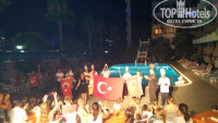 Но тут аниматоры постоянно были на виду, либо в отеле либо на пляже, не отсиживаются в своей будке (как это было в другом отеле).Предлагают разные развлечения,не назойливые.Хорошо понимают, что нужно русскому человеку, умеют нас ленивых русских заинтересовать и растормошить)))) Я ходила на йогу и на водную гимнастику,( я то по своей сути тоже отношусь к ленивому тюленю в отпуске), которые проводил капитан Нэмо, в процессе занятий были какие-то шутки и приколы с его стороны, да такие что от смеха заниматься уже не могли,и к нам потом присоединялись с удовольствием даже те кто изначально отказывался участвовать, и так же люди из других отелей, невзирая на языковой барьер, потому как атмосфера создавалась вокруг легкая и непринужденная))) Вобщем Нэмо поднимал настроение с первых минут занятий и не хотелось чтобы оно заканчивалось,и от этого человека постоянно веет позитивом которым он нас заряжает надолго))))Сразу видно что у него есть призвание работать с людьми.Вечером они -Нэмо, Джозеф и Анжела создавли атмосферу праздника и проводили всякие интересные шоу. Джозеф ходил по битому стеклу, а потом ложился и мы все человек 6-7 на него вставали (до сих пор мурашки по коже), а у него ни одной царапинки 0_0.Так же были приглашенные артисты и акробаты (танец живота, танец со змеёй) Так же -удалось попасть в этом году аж на две турецкие ночи, которые проводятся у них по четвергам.Все очень красиво было, фейерверки, мороженное, флаги и гимн Турции-все это впечатляло. Сразу видно, что аниматоры стараются сделать наш отдых не скучным.Каждый вечер они предлагают поехать на дискотеку в Аланию за 5$. Сюда входит трансфер туда и обратно и сама дискотека до 3 ночи.Вобщем повезло мне на этот раз анимацией)))Спасибо вам ребята за то,что отдых удался и долго не забудется))))