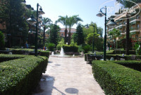 6. Территория. Территория отеля очень большая, вся утопает в зелени. Жилые блоки объединены по четыре тенистыми проходами в 2 больших здания. Между этими зданиями расположен сад с фонтанами, водопадами, морем цветов и кустарников. На всей территории растут бананы) И некоторые туристы умудрялись сорвать и попробовать плоды). Вообще вся инфраструктура располагается, так сказать, паровозиком. Ближе всего к дороге жилые корпуса → потом здание ресепшена, игровой зал (автоматы, боулинг) → основной ресторан, аттракционы → основной бассейн, взрослые и подростковые горки, снек бар → детский бассейн, мини-клуб, игровая площадка → минисадик с птицами → дорога до моря → море. Дорога до моря не сказать что бы была особо дальней. К тому же, вдоль нее растут какие-то кустарники или деревья, так что, можно сказать, что идешь по саду. Если кому то не хочется идти можно прокатиться на тракторе с прицепом, тогда дорога займет секунд 20-30.