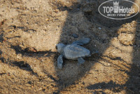 Пляж песчаный, потом на кромке с морем начинается галька, когда заходишь примерно чуть ниже колена – снова песок. Так же на этом побережье черепахи Карэтта-карэтта откладывают яйца, поэтому места кладок сотрудники отелей огораживают специальными сетками, что бы туристы не раздавили их случайно. Рано утром (около 7 часов) маленькие черепашата начинают вылупляться и бегут к морю. За 12 дней мы только один раз видели это чудо и ни разу не застали больших черепах, выплывающих на берег, хотя ходили их ждать регулярно.
