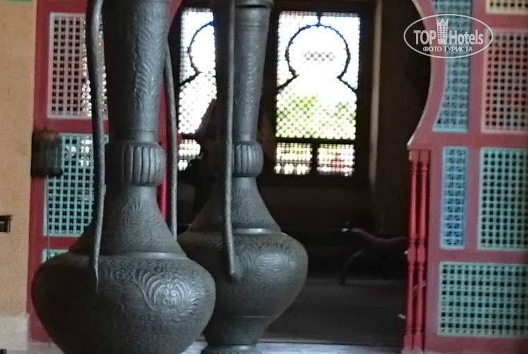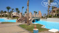 На территории есть водные горки и красивые деревянные мосты. Горками не пользовались т.к. компания спокойная..А так хорошо бы скатиться. По речке можно на надувных кругах по кругу поплавать. Стиль построек очень красивый, такой же стиль и в залах и в номерах. У нас окна в сад с фонтаном, но он редко включался. От номера можно идти лабиринтами коридоров или выйти на дорогу где проезжает электрокара, тогда прямая 100 метров. А так в прятки сыграть можно, причем сам забудешь откуда пришел. Спасибо проектировщикам порадовали. К морю ходили в брод через залив метровой глубиной так ближе от нашего номера. Босиком было даже интересно. В Марсе всегда есть ветер. Может сорвать кепку. Прохладно выходить из воды. Вечером ветер редко и очень комфортно. Ходили в порт Галиб- красиво, много магазинов и одна аптека дорогая, нужно торговаться.
