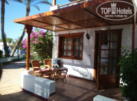 Территория отеля красивая, ухоженная, много зелени. В центре на пляже шумно, людно, громкая музыка. Плейлист на пляже не понравился. Купались в конце пляжа, возле столовой. Море там чище, людей меньше и слышно музыку соседнего отеля, она приятнее.