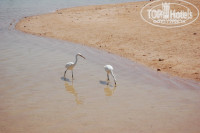 Развлечения: анимация присутствует, желающих развлекает, но без агрессии, вечером в 10 развлечения в амфитеатре. В 21-00 детская диско, днем работает детский клуб с русской аниматоршей. Сразу оговорюсь, мы все эти мероприятия посещали постольку-поскольку, т.к. осенью провели 3 недели в Турции и там насытились общением на подобных мероприятиях с не всегда здоровыми детьми, и потом, я свою 1.5 годовалую дочку почти 2 месяца лечила от бронхита, тонзиллита, коньюктивита и прочей заразы – поикались мне сопливые, кашляющие детки из так любимого миниклуба. Так что тут мы бывали, но в не “горячее” детское время – площадка нормальная – качели всех видов, горочки, домик, песочницы, в сам клуб не заходили, на диско вообще не заглядывали. Наши любимые развлечения – батут!!! Любовь с первого прыжка . Батут у входа на пляж, был всегда виден с нашей террасы, дочка просыпалась и это было одним из ее первых слов с утра. Батут платный – 15 фунтов – 15 мин., и это его огромный +, т.к. иначе мою девочку бы затоптали большие дети, которые были готовы там дневать и ночевать, но кошельки родителей не давали этого им делать . Это большой батут, разделен на 4 здоровенные ячейки с мягкими краями (за раз запускают не больше 4-х), большие дети любят там в своей ячейке разбегаться и прилетать на голову ребенку, прыгающему в соседней, поэтому я всегда старалась сидеть на центральной дорожке между ними и охранять дете, ну и вообще выбирала время, когда народу поменьше на батуте, либо рядом дети не старше 4-х лет. Вторая наша большая любовь – это море и цапли! С точки зрения взрослого, море там отсутствует – 150 метров по колено, ну может, по бедро максимум. С точки зрения 2-х летки – кайф! Днем во время прилива (примерно с 13 до 17) заполнялась еще дополнительная огромная лужа, оставляя только небольшую полоску песка, где стоят навесы с большими матрасами, ребзик копала там с другими детьми канал между лужей и морем (метров 5-6) и с удовольствием в этом канале играла, как в морской песочнице – вода теплющая! А в луже каждый день, и когда она была огромной, как озеро и когда небольшой (во время отлива), гуляли цапли - 2 белые и 1 серая, серая пугливая, а белые, наоборот, - подходят к детям и ничего не боятся, питаются снующими мальками из лужи и красуются перед фотокамерами.