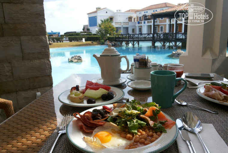 У нас было зарезервировано питание завтрак-ужин. Завтракали в ресторане у бассейна, выбор блюд был просто огромный, всегда была вкуснейшая красная рыба, тунец, омлеты готовят с тем чем вы выберете, нарезка сыров, овощи, сосиски, бобы, изумительные конвертики то с сыром, то со шпинатом и даже превосходные десерты , особенно песочные корзиночки с кремом похожим на маскарпоне и фруктами. Так же можно взять не просто кофе на завтрак, а латте или капучино. Очень большой выбор фруктов: сливы, нектарины, дыни, арбуза, яблоки, бананы, груши и даже черешня ( и это в сентябре то месяце!). Ужины были тоже хороши. Всегда уходили сытыми и довольными.