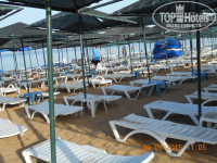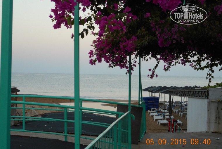 ПЛЯЖ, МОРЕ. ВОТ ОНО, САМОЕ ГЛАВНОЕ!!! Мы искали отель именно на этом пляже, так как год назад были здесь, но в другом отеле. Дорога на пляж занимала не более 2-х минут. Опять же, вроде бы минус, но после сытных приемов пищи, этот минус моментально превращался в плюс!!! Приятно было пройтись, немного растрястись, тем более такие красивые цветы растут по дороге на пляж. Речка, мимо которой проходит дорога, никаких запахов не издавала, только нам показалось, что вода в море на нашем пляже чуть-чуть прохладнее, чем немного правее, поэтому мы купались напротив отеля Аска. Море - супер, песок - мелкий, солнце очень ласковое, гуляли по берегу и в право до скал, и влево до шарика. Температура воздуха была +35+38 градусов! Приличный бар на пляже: есть чем перекусить, попить чай, кофе, алкогольные напитки, постоянно фрукты, особенно вкусен был АРБУЗ! И дыни вполне созрели дня за 3 до нашего отъезда.