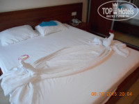 Приехали в отель около 8-00, встретили нас по-доброму, с улыбками, надели браслеты, отправили на завтрак, номер пообещали к 12-00. Ровно в 12-00 выдали ключи и повели в номер. -1 этаж, №805. Сначала посчитали это минусом в полном смысле слова, но оглядевшись, этот минус быстро превратился в плюс: теневая сторона, солнце только утром, тишина, спокойствие, даже соседний отель при закрытых дверях нам не мешал. Больше было слышно соседей по номерам, так как перегородки, видимо из картона! Еще один плюс - не завязаны с лифтом!!!