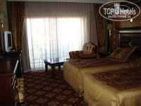 Быстрота расселения зависела только от скорости туристов в заполнении регистрационных карточек. Взамен на карточку туристы тут же получали ключи от номеров. Жили в основном здании, Аннекс и клубное здание пока были закрыты. Все номера в основном здании с боковым видом на море. Здание построено и обставлено в дворцовом стиле, поэтому не покидало ощущение, что находишься в Екатерининском дворце С-Петербурга. На креслах, с подлокотниками в виде позолоченных львиных голов, можно было отдыхать, там не было веревочки с надписью "руками не трогать". Огромное количество зеркал в интерьере создает впечатление бесконечности пространства. Вещи в номер доставили практически сразу, приняв душ с дороги и переодевшись, мы отправились знакомиться с отелем. Поскольку внучка занимается спортом, то особый интерес был проявлен к тренажерному залу. Приветливый персонал спа центра тут же нам устроил маленькую экскурсию по своим сокровищницам (тренажерный зал, бассейн, джакузи, баня, сауна, парная, многочисленные массажные кабинеты).