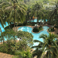 Сказать шикарный отель - ничего не сказать, при этом есть достаточно бюджетные варианты размещения. Шикарная огроменная территория: ухоженная природа, лагуны, водопад, плавающие качели в лагунах, по территории ходят павлины, курочки, уточки, фонтан работает, вечером подсвечивается, ездит паровозик до входа и по территории каждые 5 минут, теннисные корты, хороший спортивный зал, корты для сквоша, детский городок, 3 детские горки в бассейне + есть бассейн с морской водой, вообще бассейнов много, великолепный спа, разнообразные развлекательные программы, живая музыка по вечерам, при этом все очень ненавязчиво, комфортно, уютно. На территории штук 5 разных ресторанов, ларьки с мороженным. Можно подняться этаж на 15-20 (не помню точно) в самом высоком корпусе и любоваться панорамой Пхукета - можно просто так, а можно заказать туда кофе-мороженное, поесть. Магазины рядом. Недалеко от отеля местный храм - очень красивый-пешком минут 10-20.
