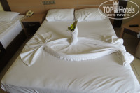 Отдыхали с мужем вдвоем. Питание понравилось-было на любой вкус и диетическое и поострее.Номер убирали каждый день. Постель меняли раз в три дня. Территория очень зеленая. Море теплое и чистое.Единственный минус проблема с заходом в море. Встречаются камни и плиты. О плиты иногда можно повредить ноги. А в остальном можно поставить пять.