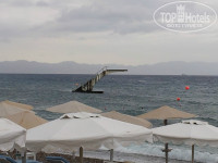 Есть дальний пляж-песчаный и большой, тихий, не очень ухоженный, неплохой. Лежак-3 евро.