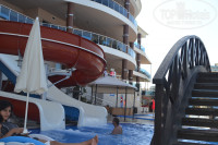 Бассейн просто супер, в джакузи народу каждый день много, побывать там получилось в последний день, горки там 2,одна маленькая и большая,катались с удовольствием! Каждый день для туристов развлекательная программа, ребята молодцы, вечером мы участвовали в конкурсах, мой муж даже выиграл бутылку вина.И еще очень вкусное мороженное возле бассейна.