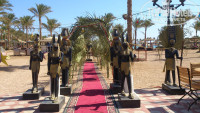В самом начале хотелось бы отметить организованную работу туроператора БиблиоГлобус. Мы все переживали как найти гида в аэропорту, а оказалось, что искать никого не нужно, самолет встречали наверное около 20 гидов (если не больше). Сразу же показывали что, куда и зачем, как оформлять, куда очередь занимать, где автобус. У всех русский язык на достойном уровне. На следующий день утром была встреча с гидом, на момент нашего приезда был Валид. Вообще просто молодец, все рассказал, на все вопросы ответил, дал свои рекомендации по всем важным вопросам (включая общение с арабами, питание, даже лекарства какие покупать в аптеке местной при расстройстве пищеварения), дал свой номер мобильного телефона, по которому его можно было найти в любое время суток. Затем его куда-то перевели от нас, но когда ему звонили, он все равно помогал советом, да и вообще помогал решать возникшие вопросы. Вообще в отеле гиды постоянно находятся, но обращаться к ним не приходилось. Прилетели мы как раз к обеду, сразу покушали, потом нас заселили, паспорта утром вернули (ничего такого уж криминального в этом не увидели). Персонал очень доброжелательный, за весь отдых мы не увидели ни одного равнодушного лица, все улыбаются, здороваются. Ни какого пренебрежения там или еще чего не было замечено.