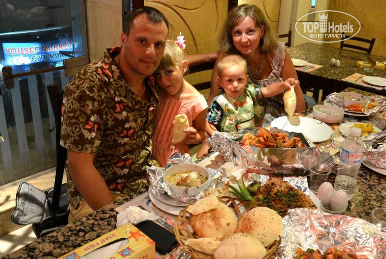 На этом наши удивления не закончились. Учитывая, что мы прибыли на отдых во второй раз, нас ждала фруктовая корзина, а также каждую среду Ольга приглашала на «званный» ужин, который проходил в различных ресторанах отеля. Мы были в рыбном и ресторане, который расположен в основном корпусе отеля, чуть дальше лифта. На каждом таком ужине всегда присутствовала Ольга и mr. Mohamed Mady, они беседовали с туристами и спрашивали их мнения об отеле и существующих проблемах, потом были организованы совместные фотографии. Помимо этих ужинов, mr. Mohamed Mady организовал нам разовое бесплатное посещение, в любое вечернее время, в рестораны итальянской и рыбной кухни. Короче говоря, я и моя семья были очень довольны таким отношением к нам.