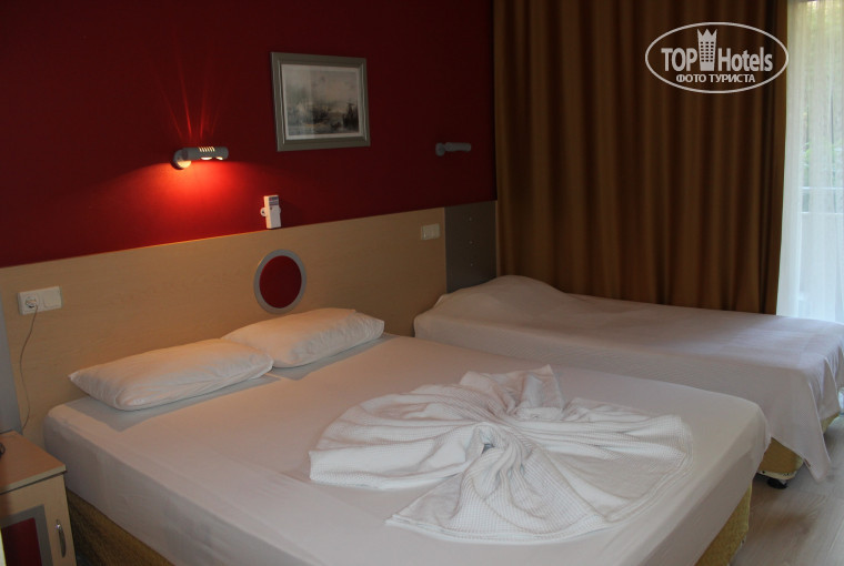 Прибыли в отель рано утром, сразу надели браслеты, предложили пойти на завтрак. Мы оставили вещи на ресепшн, переоделись в комнате рядом с хамамом. После завтрака мы расположились у бассейна. Заселили нас после 12 часов. Т.к. отель был густо заселен, номер предложили на первом этаже. Хотелось быстрее в номер, поэтому ждать другой номер не стали. Номер как на фото: не очень большой, но чистый, светлый, со свежим ремонтом и новой мебелью. Кто-то писал, что втроем тесно. Нас было трое взрослых, нам прекрасно хватило места. Удобные кровати, постельное белье белоснежное, полотенца тоже. Меняли белье очень часто. В ванной комнате все чистенько. Убирала горничная хорошо, правда, частенько после 14 часов, но нам не мешало, в номере не сидели. Оставляли раза три чаевых по доллару. Писали в отзывах, что горничные вещи таскают, все ерунда. Мы и вещи сушили на балконе(на первом этаже), и оставляли фотик, айфоны, айпад, деньги некрупные в ящике стола, сигареты, ничего не пропадало.