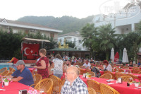 Питание в отеле неплохое. Завтраки немного скудные, но в принципе утром много и не надо еды. Обеды и ужины достаточно обильные: овощи, зелень, салаты(правда, я их не ела, готовые салаты не ем вообще в отелях в принципе), курица, мясо (говядины мало, понятно, в Турции с этим напряженка), рыбку очень вкусную давали за 10 дней раз 5, пару раз на гриле. Супчики-пюре неплохие. Тортики очень вкусные!! Из фруктов давали : арбузы, дыни, виноград, груши и яблоки целые. Из напитков пили в основном пиво, вино не люблю, тем более сухое. Муж пил либо пиво , либо виски с колой. Нормального качества. Пиво вкусное, всегда холодненькое.Обслуживание отличное, все официанты вежливые и предупредительные. Дядечка, который пек блинчики по утрам и по вечерам раздавал еду на гриле, всегда был очень приветлив, шутил и подкладывал кусочки повкуснее))) Последние несколько дней нашего пребывания, в отель приехал хозяин из Стамбула, в принципе особых изменений не было в обслуживании, многие сотрудники работают уже по многу лет, все стараются.Да, понравилось разделение на курящую и некурящую зоны в ресторанной части на улице!