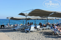 Пляж и море: Крупный песок, сменяется гулькой, затем мелкой в море. На пляже достаточно чисто, а не много мусора бросают не инопланетяне…. Море… просто шикарно- очень теплое и чистое НИ какого мусора не наблюдалось, пугающая всех (по отзывам) труба сливает просто дождевую воду.. Мы на второй день сменили время посещения моря (после обеда) и проблемы с лежаками не стало как таковой… рекомендую всем !!!