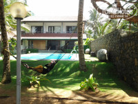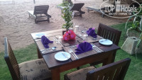 В нашем случае, отдых в этом отеле - это было свадебное романтическое путешествие для моих пожилых родителей в их 50-летнюю годовщину свадьбы (золотая свадьба). Я не уведомляла отель заранее об этом торжестве. Сказала уже по приезду. И какой шикарный праздник устроили работники отеля для моих мамы и папы! Им подарили красивый букет необычных ярких цветов, за которым один из работников специально ездил в город. Для них на пляже накрыли стол, красиво сервированный, а повар испек наивкуснейший торт с шоколадом, сверху которого была красиво выложена кремом поздравительная надпись. Вдоль океана были зажжены в темноте факелы, и это было настоящее торжество! А после ужина работниками отеля в честь юбиляров был запущен салют на пляже. Когда они вернулись в номер, их ожидала красиво убранная постель, украшенная живыми цветами. И всё это было за счёт отеля, ни единого доллара или рупии с нас не взяли. Это было очень приятно, и моей благодарности каждому работнику нет предела.