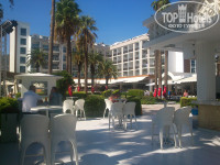 Отдыхали с 1 по 8 октября парой. Приехали ночью, поселили нас в номер 4308, вид из номера на соседний корпус (смотрите на фото), номер маленький, но нам хватало места. Единственный минус, одну ночь очень сильно гудело какое-то оборудование, невозможно было спать, уже хотели идти на ресепшн и гудеть перестало. Когда заехали в номер, он был идеально убран, но после того, как через 2 дня оставили чаевые горничной, уборка проводилась тяп-ляп, оставалась пыль на мебели и на полу, поэтому за сервис поставили 4. Тапочек и халатов не было, но мы спокойно пережили их отсутствие, т.к. ехали за морем и солнцем. Погода была +28-30 градусов, вечером +23-25*С. Отель очень понравился, большая территория, много пальм и зелени, до моря 2 шага. Много местечек, где можно посидеть. Большой бассейн с фонтаном. Питание отличное, разнообразное (много овощей, рыба, мясо, картошка в разных видах, рис, сладости). Официанты приветливые, обслуживали хорошо. Голодным не останешься, т.к. есть еще снэк-бар, кондитерская и бистро, где давали турецкие лепешки и шаурму. Море теплое и прозрачное, мы приходили на пляж после завтрака в 8.30-9.00 часов, выбирай любой лежак, к 11-ти уже выбор не велик. Единственно, что не понравилось, пляж очень узкий и нельзя проносить на пляж из бара напитки. Набережная большой протяженности, мы ходили гулять вечером и сделали вывод, что наш отель самый большой и красивый. Анимация в отеле отличная, утром зарядка, потом всякие игры (дартс, водное поло), днем уроки танцев, вечером шоу-тайм и дискотека. Вообщем, каждый найдет себе занятие по душе. Отдыхом довольны, были мелкие недочеты, но они совершенно не омрачили нашего пребывания в отеле. Уезжать в холодный Киев очень не хотелось. Друзьям обязательно порекомендуем Ideal Prime Beach.