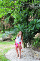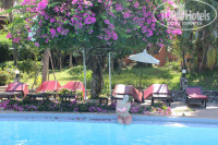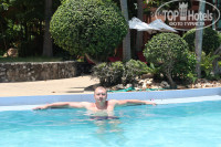 Отдыхали в Начале Мая 2015г с парнем. Выбирала отель по отзывам и фоткам! Расположен на 2ой линии, от моря, ну минут 10 пешком, но при отели есть "Машинка", которая предназначена для проката до моря, но при нас никто ее не использовал и не просил! Ребята на ресепшене, конечно, улыбаются во всю, но толку от них мало - не тайцы, а из Лаоса, так что даже наша гид не совсем их понимала! Удивило, что ресепшен, столовая и при отельная зона ВСЯ на улице, т.е. это не здание, а просто островок с крышей. С просмотренных фотографий подкупило то, что там ТАк много зелени, растений, всё такое большое и сочно-зеленое - и это ПЛЮС, но МИНУС в том что, (узнала - испугалась), что на этих пальмах сидят Летающие стороные тараканы, которые трещат или лазиют по стенам!!! - По этому Только утром и в обед,Я наслаждалась природой, а по вечерам и ночью, Я бегала по отелю, лишь чтоб никаких тараканов не видеть и слышать. С картинок номера хорошие, но на самом деле им нужен срочный ремонт, т.к. двери уже серые и покрашены, как - будто кистью, бельё раз попалось дырявое. ПРО ОБСЛУЖИВАЮЩИЙ ПЕРСОНАЛ: уборка в отелях, это что-то, в первые два дня- к нам вообще никто не приходил, на третий день пришли в 9 вечера- ну вообще не вовремя, мы в город собирались, а тут какие-то две женщины горлопанящие и поющие песни, сменили полотенца, подмели пол, заправили кровать и поставили шампуни (заполненные по половинке), при этом просящие денег! иногда и воду не всегда меняли! Чтоб получить Полотенца у бассейна, нужно сбегать на ресепшен, допроситься какого-н пойти с тобой и дать полотенце! ЗАВТРАК: хороший, разнообразный, но если фрукты закончились их редко дорезают, но нам всегда всего хватало, завтракали мы в 9-9.3. Русские в отеле были, немцы, а также индусы и китайцы, но они на выходные приезжают и только ходят с чемоданами туда сюда, но при нас не орали и не дебоширили. Индусы, конечно, сидели на лежаках и купались - пялились! Но их было не много, так что лично нас не напрягали! БАССЕЙН отличный, всегда по утрам чистили и почти хлоркой не вонял. Там красивучие дерево - большое розовое такое, Я весь отдых на него смотрела в конце хотела сфотаться, но когда мы только вышли фотки сделать, пришел садовник и по-уродски его обкромсал, всю красоту срезал! УДИВИЛО то, что в течение дня В ОТЕЛИ никто не ест, т.е. в столовой и у бара НИКОГДА Никого НЕ БЫЛО. ПРОДУКТОВЫЕ МАГАЗИНЫ за углом и 7eleven/Famaly market и тележки с фруктами и тайские причуды! Отдых еще обмачил такой случай: в середине недели, когда, похоже китайцы из нашего корпуса съехали, нас управляющая по просила переехать в другой номер, она так трещала, что Я полком и не поняла, то ли у них там ремонт начался, то ли просто нас перекинули, конечно не очень хотелось перетаскивать вещи, при том, что это было так: После завтрака мы пошли к бассейну и только "улеглись", как подходит парень, улыбается и куда-то зовет с карточкой от номера, Я пошла с ним, он завел в новый номер, развел руками и вручил ключ, улыбнулся и ушел, Я посмотрела номер и вышла, тут уже подскочила, по-видимому управляющая и на тайско-англ. начала говорить! В общем с трудом мы поняли друг друга и перенесли нас чемодан (вид с балкона был уже не тот(в первом номере, на балкон можно было и чуть-ли не голой выходить и шторы не задвигать, т.к. дерево закрывало наше окно от посторонних глаз,да и соседей не было) но тоже первый этаж с видом,
