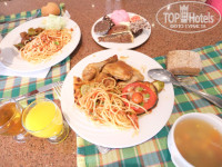 В номер можно таскать столько еды сколько влезет, в их посуде. Возле корпусов стоят корзины под тарелки/кружки. Еда потрясающая! Пицца возле бассейна, закуски на пляже, обеды и завтраки - все вкусно сытно, голодными никогда не оставались (за исключением дней прилета и вылета))) Воду не дают, но ее можно налить почти везде, мы не жаждали абсолютно. Каждый вечер были какие-нибудь барбекюшки - то рыба, то курица, то мясо. Мясных и рыбных блюд хватало и без этого. Еще готовили пасту, очень понравилась. Супики почти как в России, оч вкусные)