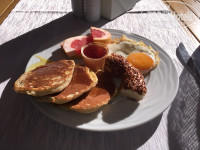 Дальше еда - я люблю овощи и не ем мясо, поэтому могу рассказать про овощи:) Свежие, вкусные. Молодой человек мясо ест и тоже был доволен. Фруктов можно сказать что нет, сладкого мало. Вобщем кормят хорошо и везде. Основной ресторан, ресторан у моря, кондитерская, мороженое, лепешки(ели в Турции и вкуснее), 3 ресторана Аля-карт - Турецкий, Азиатский, Итальянский. Если неделю в отеле, то можно один раз сходить в Аля-карт, если две недели, то два раза. Можно и платно пойти, по-моему 10-15$ с чел, точно не помню. Выбрали Турецкий. Когда пришли в ресторан стол был уже накрыт, горячее можно выбирать. Вобщем неплохо.