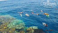 Разместили нас быстро, номер большой, на первом этаже (соответственно муравьи толпами). Затем увидели большого таракана - убили. Пошли на ресепшен, попросили поменять номер. Нам сказали, что таракана уберут, все потравят, а завтра номер поменяют. Убрали и потравили только со второго раза, но очень быстро))). Утром нам предложили бунгало на коралловом пляже. Мы съездили, посмотрели, и нас всё устроило. Море рядом, тишина, нет суеты, официанты вокруг тебя бегают (как дела? что принести? чем помочь?) т.к. в бунгало не много народу отдыхало, то все внимание было нам))) Большое спасибо Ибрагиму (когда сломалась маска, он отдал мне свою), Ахмед не давал утонуть))) Саша тоже лапочка. Бармены нас радовали разными коктелями по вечерам. Повара устраивали тематические ужины: итальянская кухня, индийская (очень острая), египетская, греческая.... все очень вкусно, десерты тоже оригинальные, мороженое два раза давали. Если вино заканчивалось - официант приносил новое, ну и все в том роде. Короче нас холии и лилеяли. Было очень уютно. Вся прелесть была - то чувство уединенности, как раз то, что надо для двоих.