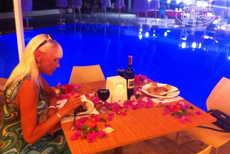 Представляла себе отели иначе, наверно этот и особенный) Удивилась, когда увидела отдельно стоящие домики) Красивая уютная романтичная аллея. Но также удивилась, когда попала в номер - его состояние и размер оставляли желать лучшего. Старый грязный кондиционер, странные сломанне торшеры, темно, тесно, между кроватью и тумбой с телеком сантиметров 30, то и дело стукаешься)) В общем была двуспальная кровать и одна односпальная, но жить в таком номере можно только одному - вдвоем уже тесно)) Выспаться невозможно, потому что в 7-8 утра становится слышно всех проснувшихся соседей и уборщиц. Еще они не реагируют на табличку "не беспокоить", заходят всё-равно. В ресторане ассортимент большой, но съедобного и реально вкусного из этого не так много) Но ничего, найти что-то для себя покушать можно) Из анимации был по сути один Антонио, девочек помощниц почти не видно было, хороший красивый харизматичный парень, с отличным чувством юмора, прекрасный ведущий, правда, характер, бывало, демонстрировал) Устал наверно, конец сезона всё-таки. Так вот за 3 дня до нашего отъезда вывезли почти весь отель, прекратили развлечения, доживали мы в пустом скучном отеле. А так мальчики в баре отличные доброжелательные, ресторан и бар - обслуживание отличное - всегда вовремя всё уберут и стол протрут, поздороваются и приятного аппетита пожелают. Спасибо управляющему ресторана, за то что украсили стол по моей просьбе на день рождения моей мамы, мелочь, а очень приятно) Сравнивать мне пока не с чем, мне понравилось, буду по всем скучать)