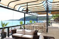 Море сказочное, как впрочем, и везде в данной местности. Особый уют создает бухта и гора в полукилометре справа. Места на пляже хватит всем, и под навесом и возле моря. Море настолько близко, что комфортнее находться не на пляже, а у бассейна и оттуда ходить купаться в море. Ограничусь этим не потому, что больше о море нечего сказать, просто о нем много и восторженно говорят все и говорят чистую правду. Добавить нечего, море – великолепно!