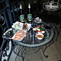Номера: wi-fi бесплатно в номере ,ловит отлично, пароль на ресепшене,есть фен, сейф в номере(бесплатно), телевизор жк, 2 рус-х канала, шкаф, кровать, кресло, столик, холодильник,чайник, посуда, розеток мало, балкон есть - но нам вид достался не очень , но мы не стали просить ,чтобы поменяли. На балконе два кованных кресла , стол, сушилки нет.