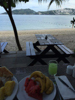 Завтрак понравился,хотя не такой хороший выбор. Мужчинам,любящим мясо и серьезную еду,будет не очень. Хотя это ведь просто завтрак. В другое время не пришлось покушать там,но можно покупать тур и с ужинами и даже все включено. Больше,конечно понравилось,что прием пищи проходит прямо на пляже,очень романтично!