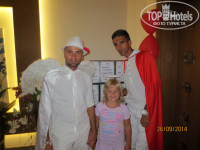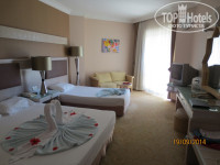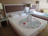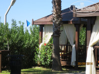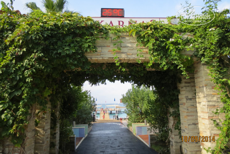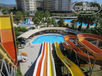 Отдыхали с семьей в сентябре 2014 г.Разместили очень быстро,вид на море.В номере все необходимое,немного старовата мебель,но это не портит общее впечатление.Все моющие средства докладывались ежедневно,полотенца меняли ежедневно,белье через день.Уборка номера отличная.Территория ухоженная.Кухня замечательная.Кто едет с детьми-анимация супер,мини клуб днем тоже отличный,небольшие аттракционы для детей вечером перед вечеринкой,есть детский бассейн.Каждый вечер проводились концерты с участием приглашенных артистов или своими аниматорами-очень интересно.Вход в море-мелкая галька,брали тапки для купания или с пирса.Остались очень довольны отдыхом в отеле.Больше всего меня впечатлило катание на водной ватрушке,если бы знала,что так страшно,не поехала-зато экстрим и куча дикого крика,повторить не решилась,а вот 6 летняя дочь с мужем катались ежедневно и по несколько раз.По средам напротив отеля приезжал выездной базар-можно купить все недорого,недалеко от отеля местный рынок,есть все,торговаться обязательно.