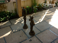 Территория небольшая, очень аккуратная, всё новое, открытый бассейн, настольный теннис и другие игры, бильярд, тренажёрный зал, зона СПА. К отелю примыкает (практически находится на его территории) 2-хэтажный долгострой, уже слегка заросший деревьями и кустами. По крышам этого долгостроя гуляют маленькие индийские дети и довольно крупные обезьянки. Наша гид сказала, что это были лангуры, которые, вообще-то, в Калангуте не живут.. Фото территории прилагаются, фото обезьян, к сожалению – нет.