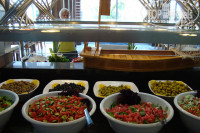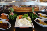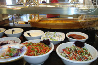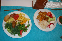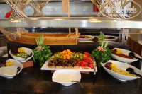 Питание очень разнообразное. И присоединяюсь к мнению туристов, которые осуждают тех кто вечно всем не доволен. Для этого отеля категория "есть нечего" просто не применима. Мясные продукты : баранина на гриле, шашлычки из индейки, курица. По пятницам организовывали рыбный день- были роллы (на вкус, правда. не очень), тунец, кальмары, салат из креветок. Овощи (огурцы, помидоры, капуста, перец болгарский, морковь и т.д) и зелени (петрушка, укроп. руккола и пр.) просто в изобилии. Много разнообразных соусов на основе йогуртов с зеленью, майонезы, различные заправки, оливковое масло). Гарниры от риса, пасты. до картофеля фри и тушеных овощей в разных сочетаниях просто не перепробовать. Но отдельно хотелось бы отметить изобилие кондитерских изделий (на ужине количество столов, заставленных пирожными, и сладкими муссами, желе и другими изысками доходило до 8). Фрукты: яблоки 2-х сортов, груши, сливы, грейпфруты, сливы, виноград). Кофе из автоматов очень вкусный. Каждый вечер, пока позволяла погода, на уличной террасе ресторана на гриле жарили мясо и очень вкусные пончики. Супы. конечно. специфические, но вполне пригодные для улучшения пищеварения. Единственное, что хотелось бы отметить, что минусом во всем этом были наши (да и иностранные) туристы, которые набирали с собой целые груды фруктов и прочей снеди, при этом не думая, что они здесь не одни. Стыдно!