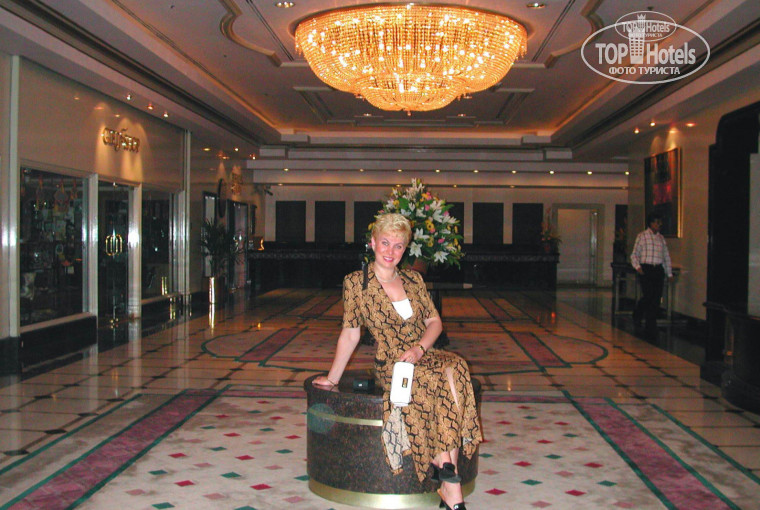Сам отель – 32-этажное современное здание в стиле модерн из стекла и бетона с зеркальным фасадом, а вот внутри царит совсем другой стиль – восточной роскоши и помпезности, огромных хрустальных люстр и красивых ковров – смотрится всё это великолепие, прямо скажу, не плохо и совсем не вычурно. Со вкусом. Короче, на мой взгляд, это приличный городской отель среди каменных джунглей с зеленным приятным внутренним двориком.