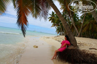 До пляжа от отеля идти минуту...по приезду на пляже отеля не было водорослей совсем,последнии дня три они были,но они были как-то куском и если пройти влево или вправо от отеля метров 30-40,то там их не было совсем,и был белоснежный песочек и бирюзовый океан,лежаков уйма,хватало всегда,так же есть душ на пляже.Справа есть пирс и пиратский корабль,затонувшая яхта и море магазинчиков,если идти влево будет дерево с камнями в воде возле русского магазина,там есть огромные попугаи,если идти дальше будет висячая пальма)))Вай фай в отеле дорогой,поэтому мы ходили от отеля в город,там в магазине бесплатный вай фай,идти минут 5-7,лично мы покупали симку у гида.Анимации вечерней как в дорогих отелях нету,есть акваэробика на пляже часов в 11,волейбол на пляже)Нам эта анимация вечерняя была не нужна,мы вставали в 6 утра,ходили встречать рассвет,целый день гуляли,только покушать приходили,в отеле не торчали,и вечером часов в 10-11 уже засыпали),по экскурсиям что сказать,они впринципе к отелю не относятся,но мы съездили на Саону,нереальное карибское море и кокосовые пальмы...баунти...больше никуда не ездили,особо больше никуда и не хотелось,да и по дням мы были недолго,не хотели через день на экскурсии ездить,да и по деньгам,учитываю наши зарплаты в Воронеже,скажу,что не дешево!!!По поводу комаров:Ребят,я не знаю,я не брала с собой от комаров вообще ничего,думала купить там,но мне не пригодилось совсем....меня вообще никто не кусал!!!Я не вкусная видимо)))По поводу солнца скажу:покупайте обязательно крем с защитой 50,это не шутки особенно если вы белые,обгорите даже под тучами!!!Мы не верили,намазались 20кой,но на следующий день за 50 пошли,потом загорели и мазалась кокосовым маслом,приехала негром)))Правда в самолёте начала облазить)В отеле есть три тренажёра,если идти по вывеске Sport Club,то найдёте,на свежем воздухе под крышей на 1 этаже,там же диванчики,телевизор и бильярдный стол,по вечерам играли в бильярд).