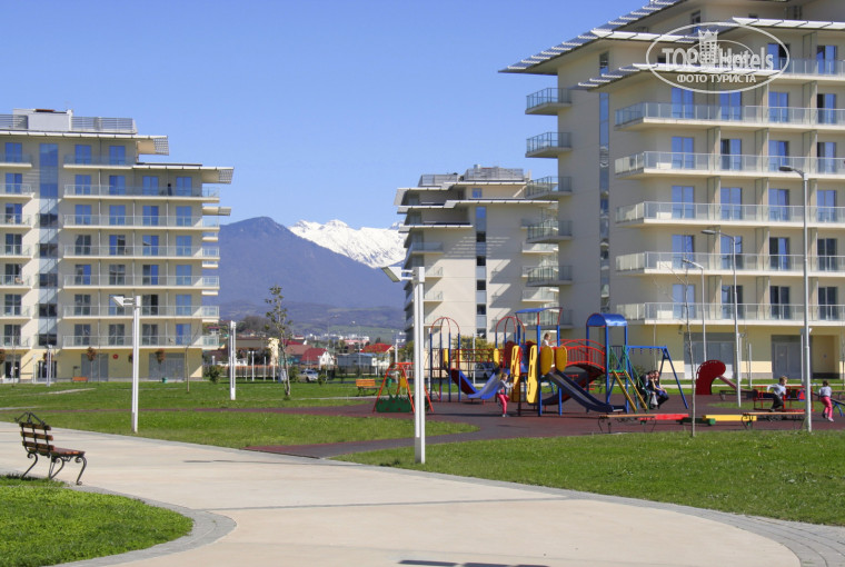 Территория отеля огромная, чистая и ухоженная. Смущает только отсутствие высоких многолетних растений, создающих тень в летний период. Но это уже скорее проблема всего курорта в Нижнеимеретинской бухте. Курорт молодой, все насаждения тоже молодые. Летом будет тяжеловато добираться до пляжа по жаре. Наличие трансфера на пляж заметно облегчило бы прибывание в отеле летом))