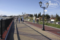 Вне летнего сезона, когда туристы приезжают точно ни на море, расположение отеля идеальное, т.к. рядом и Олимпийский парк, и Сочи-парк, и автобусная остановка до Сочи, и станция РЖД, и трасса на Красную поляну. Экскурсии не брали, хотя при отеле есть экскурсионное бюро, ездили и ходили везде сами. Воспользовались лишь услугой трансфера от отеля до Роза Хутор (200 руб. на чел. туда и обратно), и брали велосипеды напрокат (первый час 150 р., последующие 100р.)