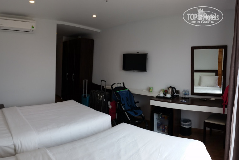 Наш номер не большой, но для "переодеться и переночевать" как раз. В ванной комнате все время вода выливалась из под дверцы душевой, и пол весь оказался залитым. Ну это уж больше придирка. Хуже то, что на балконе нет сушилки))) Поэтому если поедите сюда, захватите веревку что-ли с собой, ну или что-то подобное. Ежедневно горничные приносили набор из ватных палочек, мыла, небольшой расчески и даже одноразовой зубной щетки и пасты. Но не стоит конечно это ставить в приоритет при выборе отеля))) Ну так вот. Уборка в номере каждый день, но под кроватями всегда грязища. Один раз просто забыли прибраться, но муж сходил на рецепшен и они прибежали через 20 минут. Полотенца меняют каждый день, белье каждые 2 дня. Да, пляжные полотенца выдают под расписку на рецепшен, но раза 3 их не оказывалось днем, поэтому мы брали их с утра, с 8 до 9, после завтрака. Что касается завтрака, еда нормальная. Есть рис и макароны)) Ну и мясо, овощи, пару салатов, 2 вида супа и суп Фо, делают омлет, фрукты 3 вида, какие-то не очень вкусные пирожные, хлеб, джемы, вообщем голодным не останешься ну никак. Для детей каш нет, только хлопья 2 вида и молоко. Соки -фу, кофе - на любителя.
