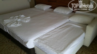 Номер был на четвертом этаже с прекрасным видом на море. Мебель нормальная. Из замечаний. был сломан телефон в ванной, он болтался (но я его открутил и положил рядом). Было две односпальных кровати и кушетка, также нам предложили раскладушку, но мы отказались т.к. этого было достаточно. Мы ее потом переставили, жене удобно стало спать с ребенком, но и если бы кушетки не было… Объединив две кровати, стало 2 м ширины!!! Я просто «терялся», когда она спала на краю кровати и кушетки (рядом с ребенком).